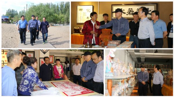 敦煌千年古城開發(fā)有限公司總經(jīng)理助理魏旭和游客中心主任白皛全程陪同并熱情接待?偨(jīng)理助理魏旭對千年敦煌項(xiàng)目整體進(jìn)行了講解和匯報(bào)。文化部文化市場司副巡視員劉魯平、國家旅游局監(jiān)管司調(diào)研員涂衛(wèi)東等領(lǐng)導(dǎo)對千年敦煌項(xiàng)目表示出極大興趣,并對月牙泉小鎮(zhèn)文創(chuàng)樓和敦煌特色一條街進(jìn)行了實(shí)地考察。