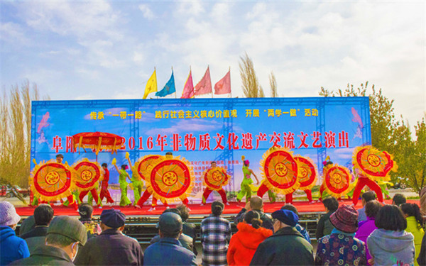 據(jù)悉,此次安徽(阜陽(yáng))·敦煌國(guó)家級(jí)非遺項(xiàng)目交流文藝演出活動(dòng)是為進(jìn)一步促進(jìn)敦煌、阜陽(yáng)兩地國(guó)家級(jí)非物質(zhì)文化遺產(chǎn)項(xiàng)目的省際交流,相互借鑒先進(jìn)的文化保護(hù)經(jīng)驗(yàn),促進(jìn)地域文化互動(dòng)交流,以實(shí)際行動(dòng)為“一帶一路”建設(shè)提供文化軟實(shí)力支撐。11月5日至6日,非遺展演在千年敦煌·月牙泉小鎮(zhèn)舉辦,為敦煌市民送上了不可多得的民間文化盛宴。
