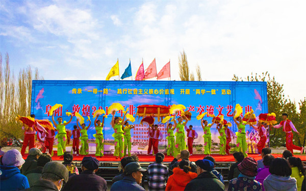 (通訊員 吳莉) “只有在月牙泉小鎮(zhèn)才能看到民俗味兒濃厚的非遺展演”,現(xiàn)場(chǎng)觀(guān)看演出的李大爺說(shuō)道。11月5日14時(shí)許,月牙泉小鎮(zhèn)中心街上人聲鼎沸、歌聲飄揚(yáng)。由安徽省阜陽(yáng)市文化廣電新聞出版局和敦煌市文化體育和廣播影視局共同主辦,阜陽(yáng)市非物質(zhì)文化遺產(chǎn)保護(hù)中心、敦煌市文化館、敦煌市非物質(zhì)文化遺產(chǎn)保護(hù)中心承辦,潁上縣文化廣電新聞出版局、千年敦煌·月牙泉小鎮(zhèn)協(xié)辦的安徽(阜陽(yáng))·敦煌2016年非物質(zhì)文化遺產(chǎn)交流文藝演出活動(dòng)在此隆重舉辦。