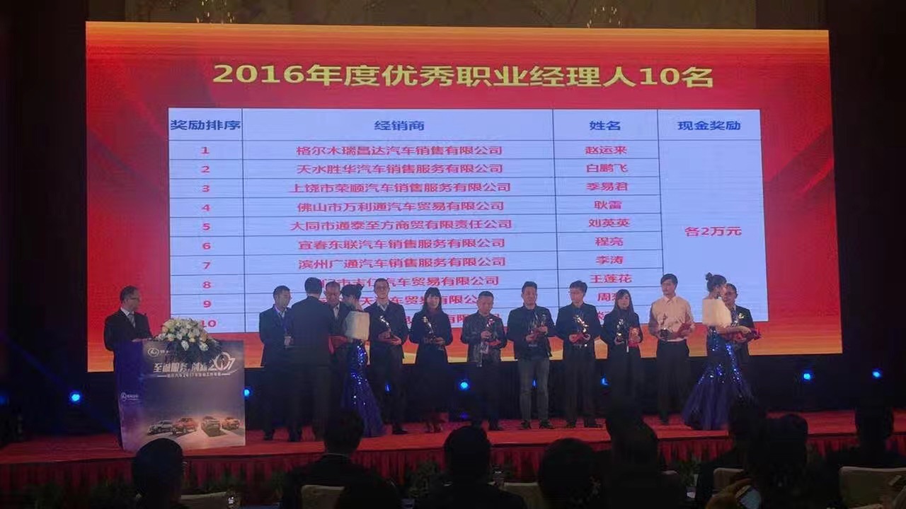 作為新近榮升萬華集團一級子公司的天水勝華公司,該公司總經(jīng)理白鵬飛憑借出色的經(jīng)營管理,在獵豹汽車年度營銷會議中被授予“2016年度優(yōu)秀職業(yè)經(jīng)理人”稱號,同時天水勝華也榮獲 “優(yōu)秀團隊”獎。