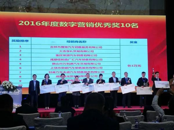 作為18年獵豹汽車品牌經(jīng)銷商,萬華金盛公司竭力于創(chuàng)造更高的銷售業(yè)績與更優(yōu)質(zhì)的服務(wù)質(zhì)量,憑借優(yōu)異的經(jīng)營業(yè)績榮獲獵豹廠家頒發(fā)的“2016年度銷售量貢獻”“2016年度數(shù)字營銷優(yōu)秀獎”“優(yōu)秀團隊”三項殊榮,同時獲得獵豹廠家給予的獎金獎勵。