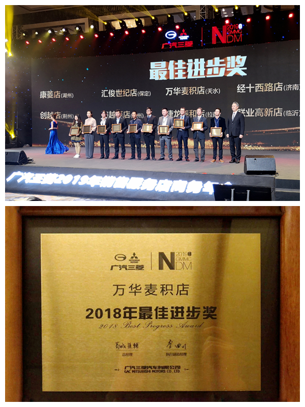 來自全國各地的348家銷售服務店代表匯聚一堂,回顧總結2018年、展望研判2019年。天水勝華作為天水地區(qū)唯一一家廣汽三菱銷售服務店,憑借廠家政策的大力支持以及萬華集團提出的創(chuàng)意舉措不斷突破自我、屢創(chuàng)佳績,獲得廣汽三菱2018年最佳進步獎。過去的一年,在全體員工的共同努力下,天水勝華不斷完善、不斷超越、不斷創(chuàng)新、持續(xù)改進,加強銷售軟實力和硬實力建設,最終取得優(yōu)異的成績,載譽而歸。